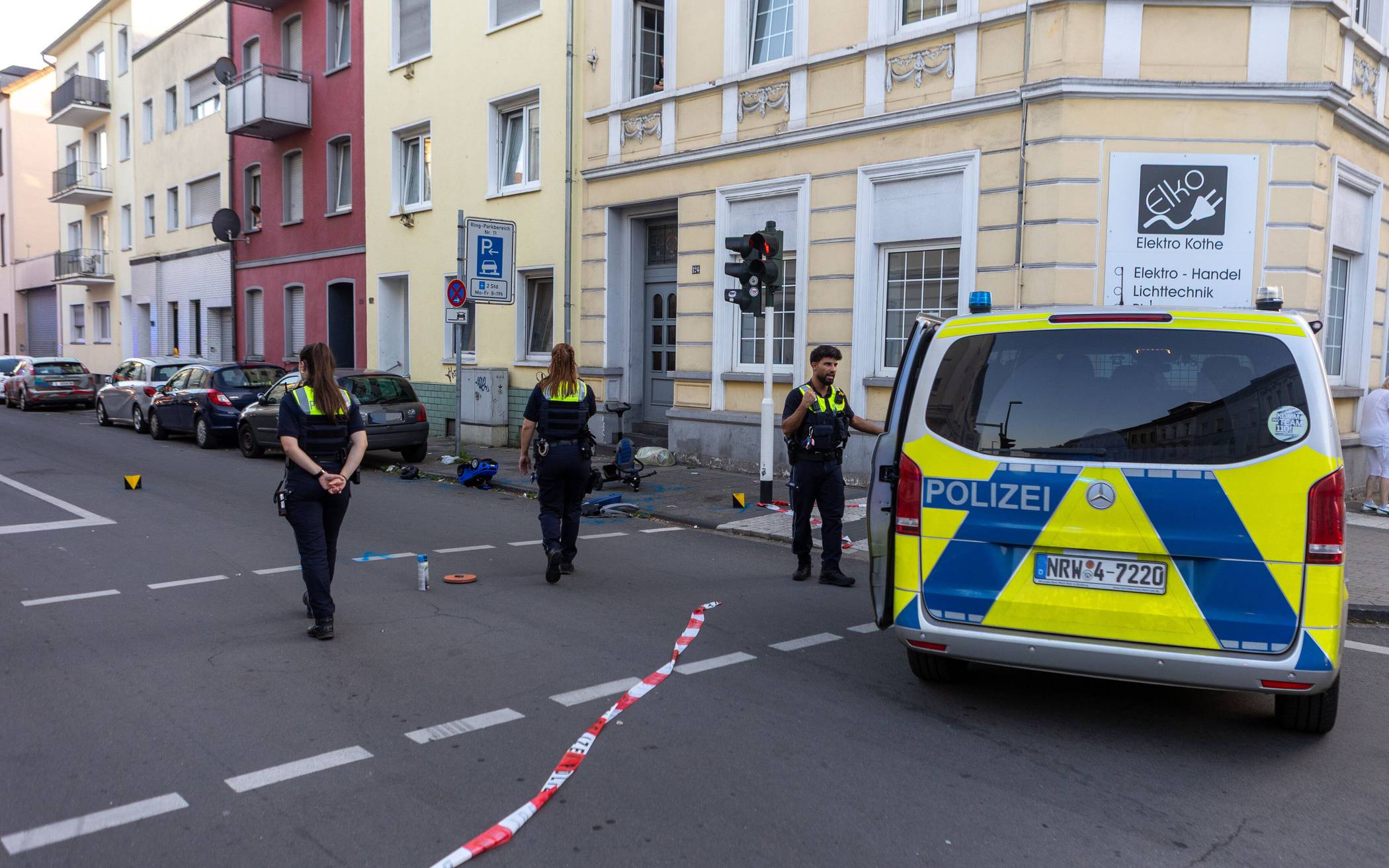 Der Pkw flüchtete danach vom Unfallort. Die Polizei machte ihn kurz darauf auf der Kölner Straße ausfindig und stellte drei Männer (24, 28, 29).