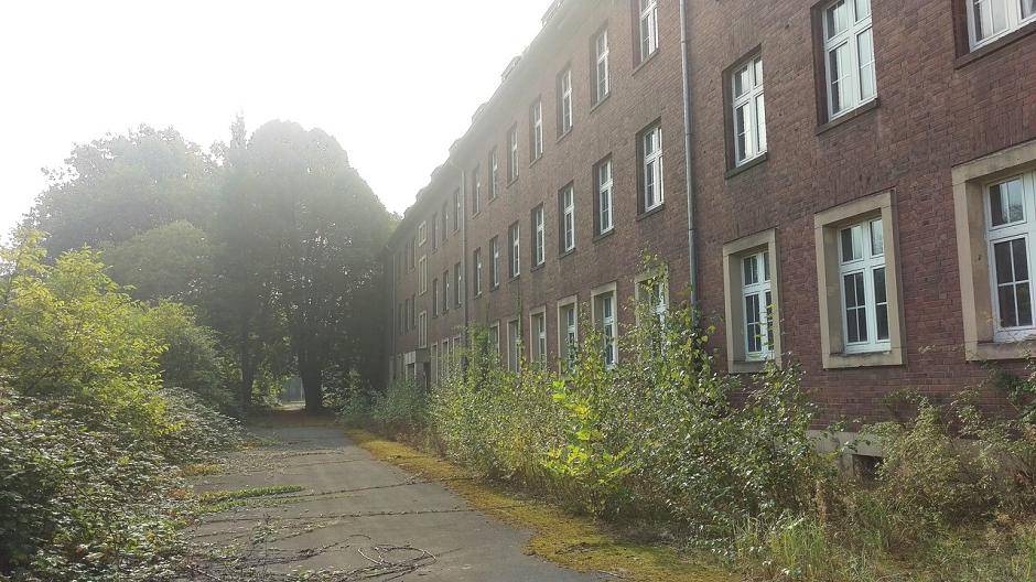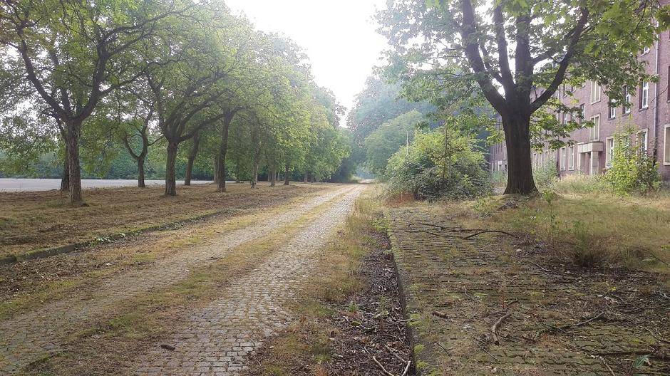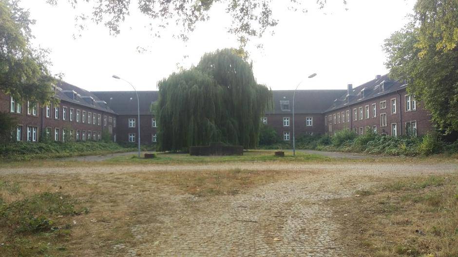 Kempener Allee Blick hinter verschlossene Kasernen-Tore