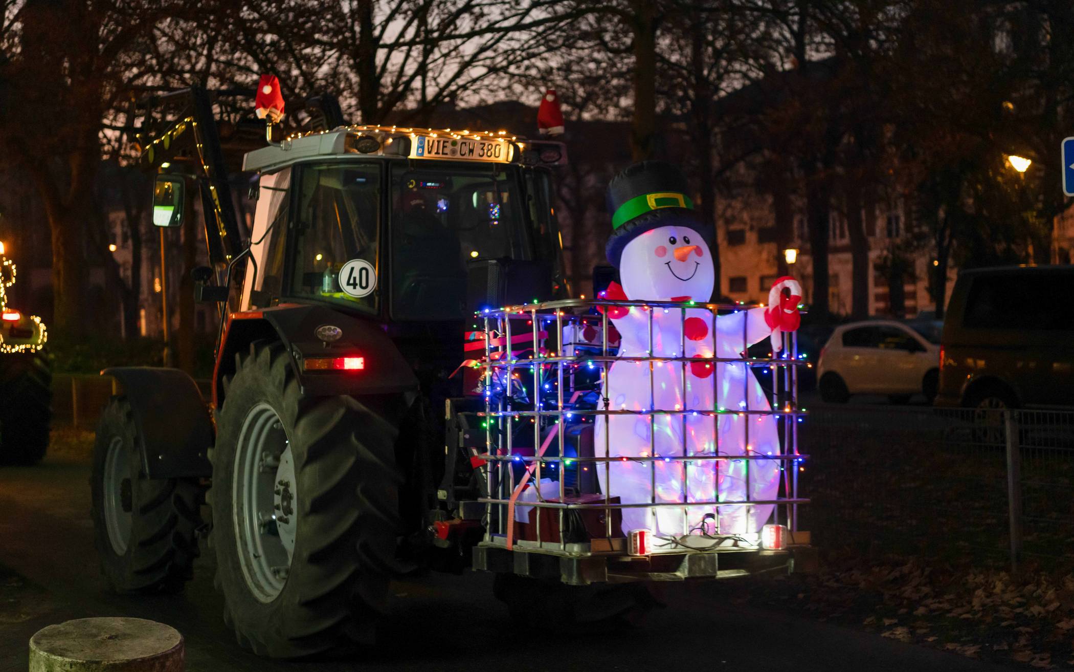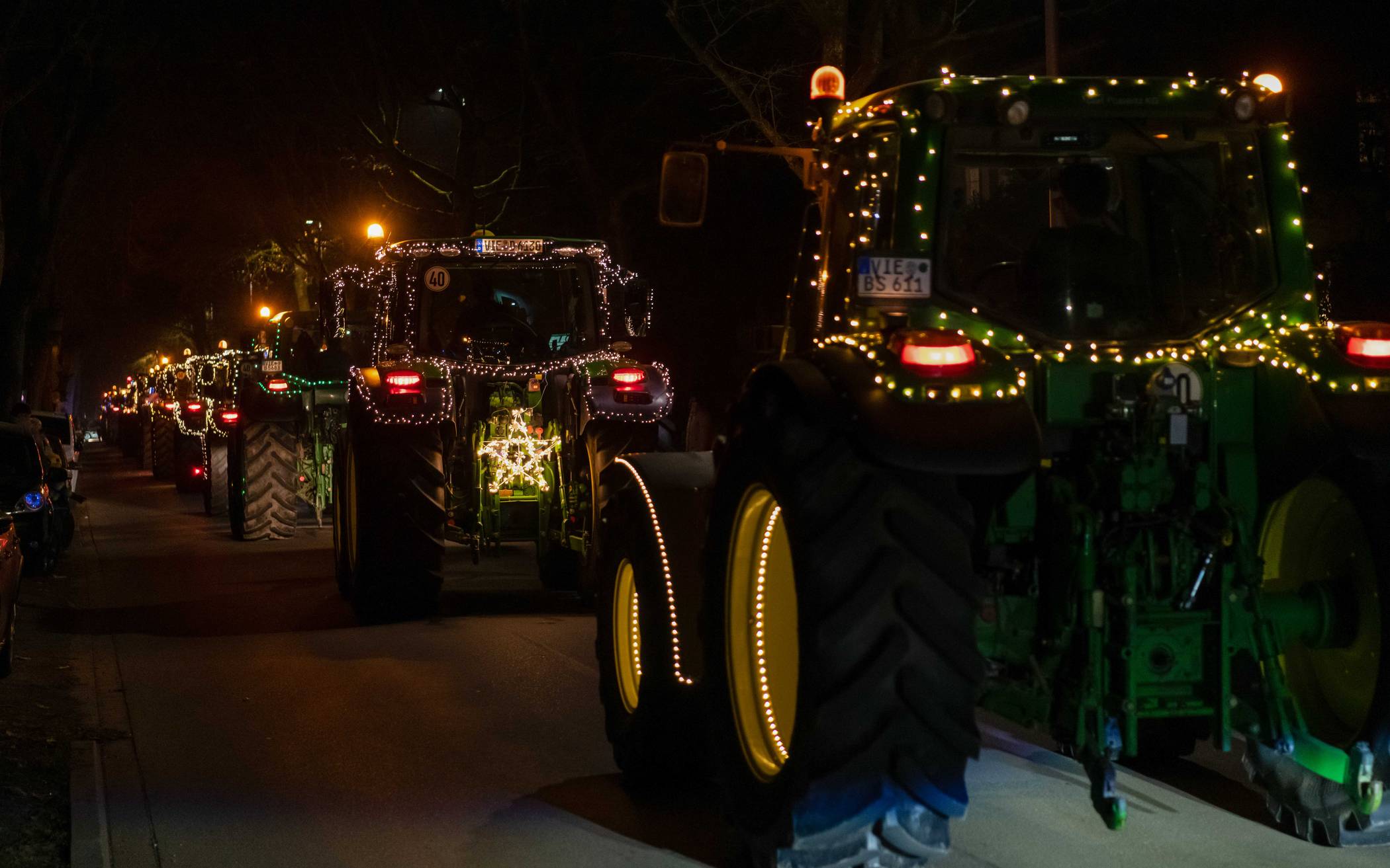 „Ein Funken Hoffnung“ Geschmückte Traktoren bei Lichterfahrt