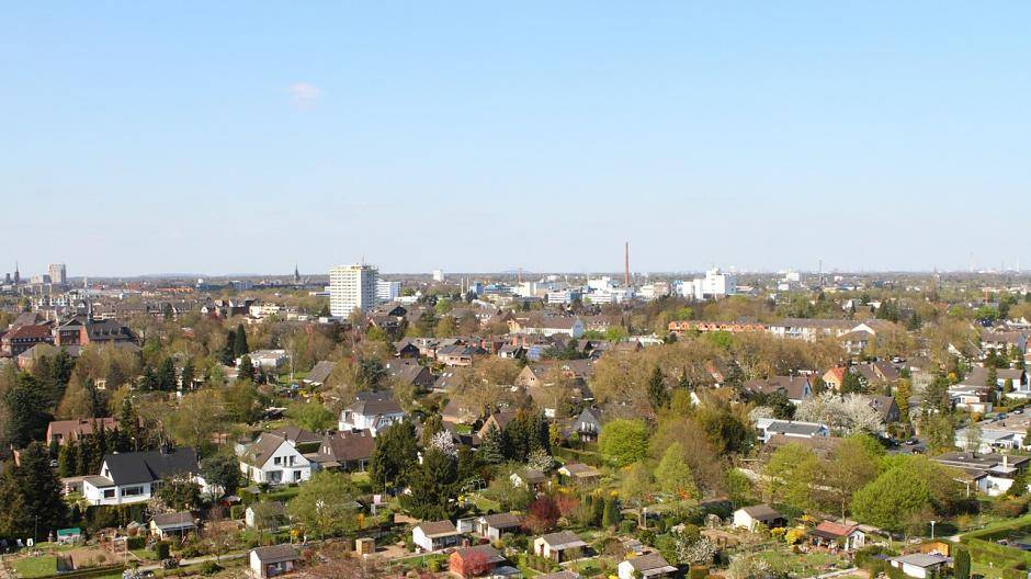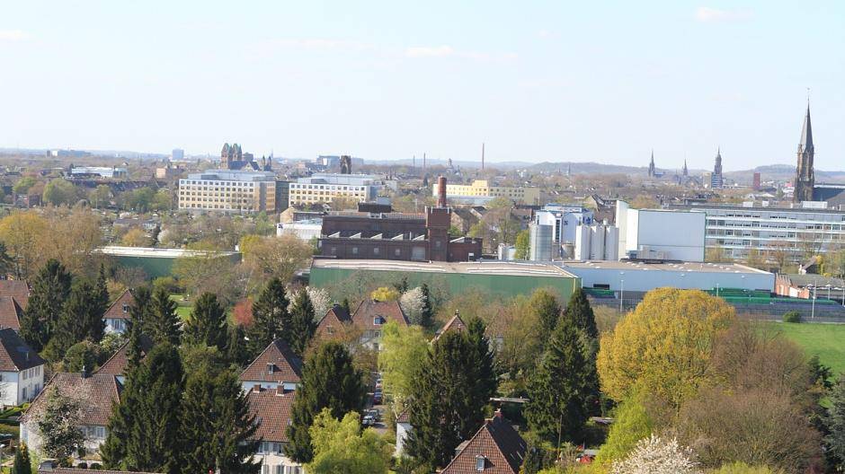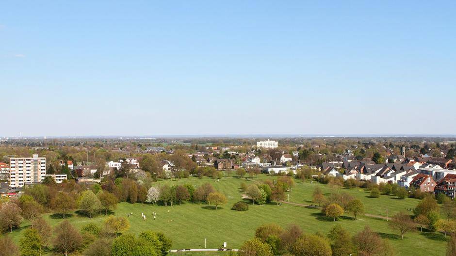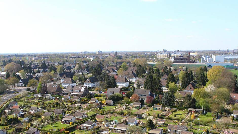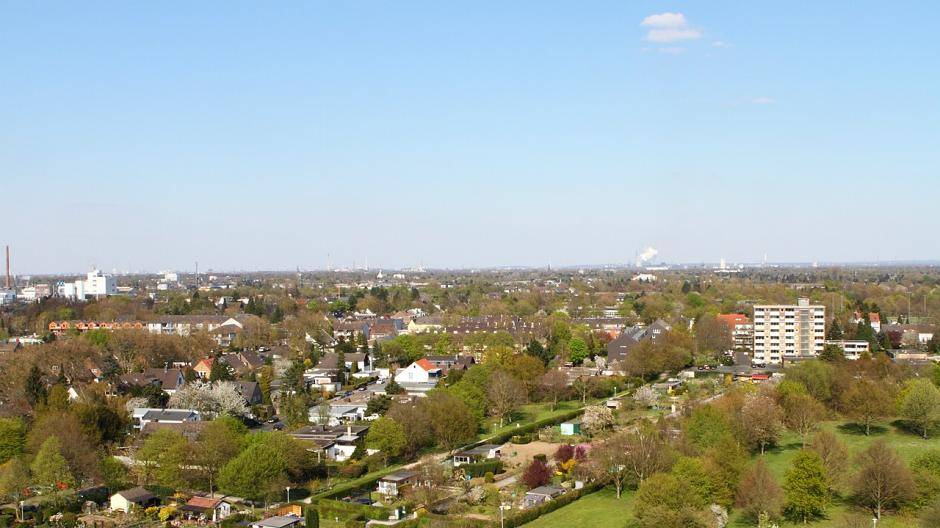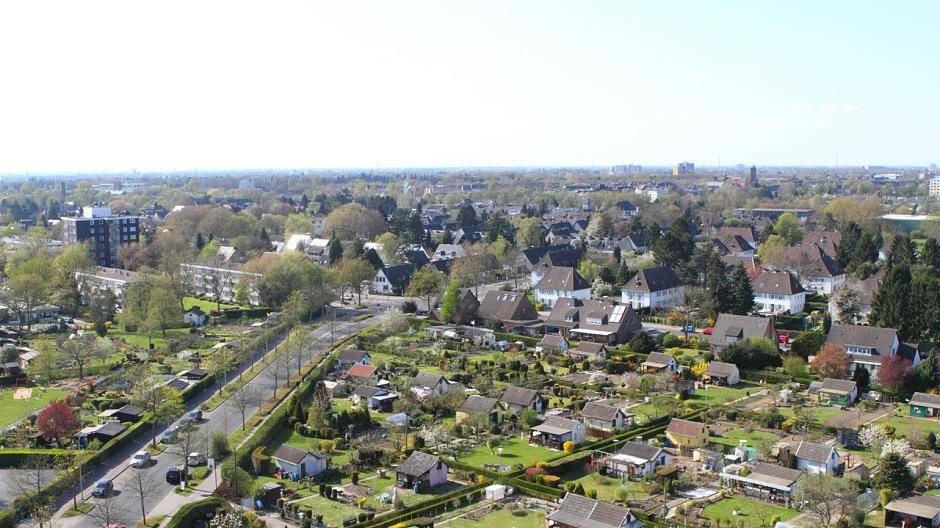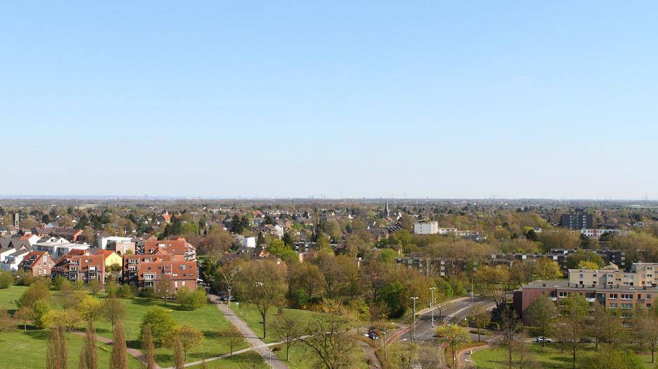 Gipfelstürmertag in Krefeld Kranwagen-Blick über Fischeln
