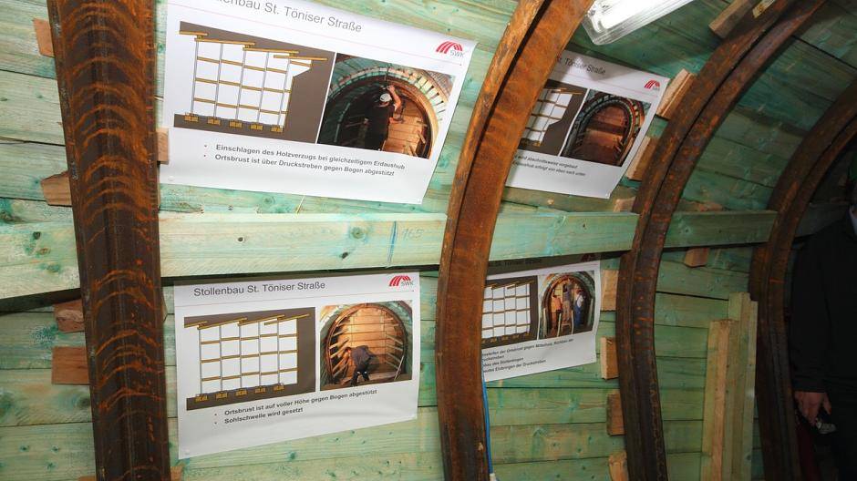 Schachtvortrieb nach rechts (Richtung St. Tönis) und links (Innenstadt)