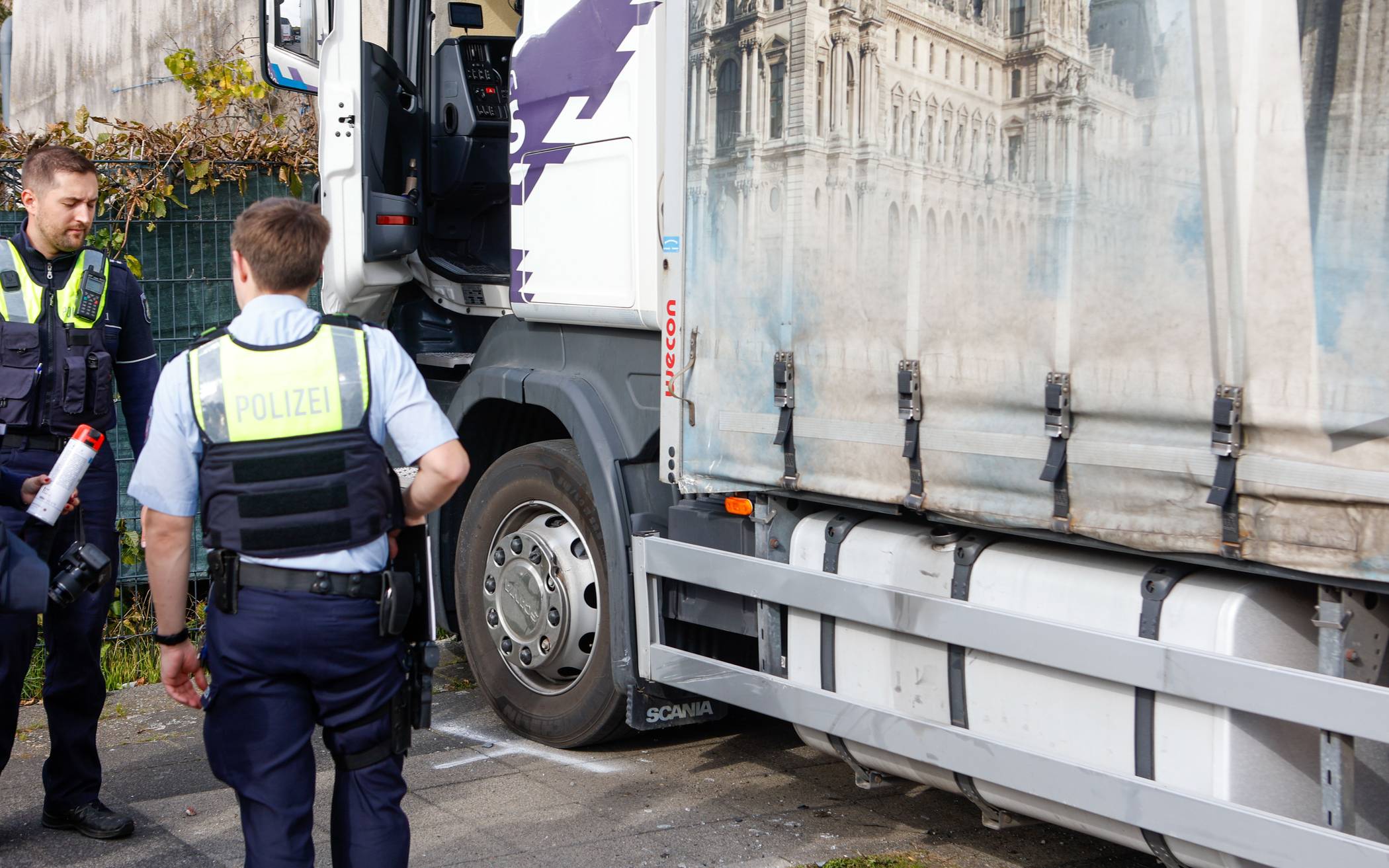 Bilder Lkw-Fahrer von eigenem Fahrzeug eingeklemmt