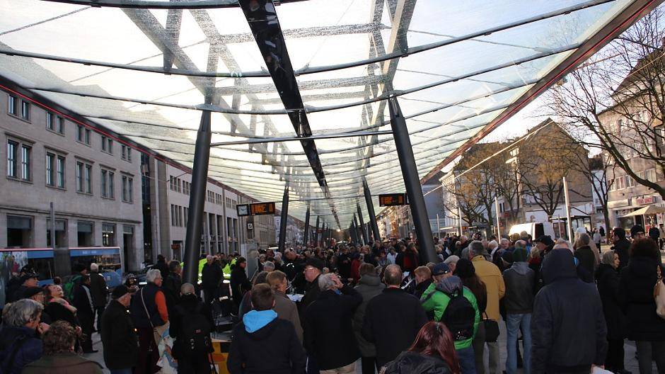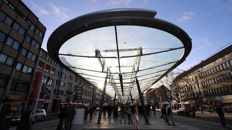 Futuristisch: Das neue Glasdach über der Haltestelle OStwall/Rheinstraße