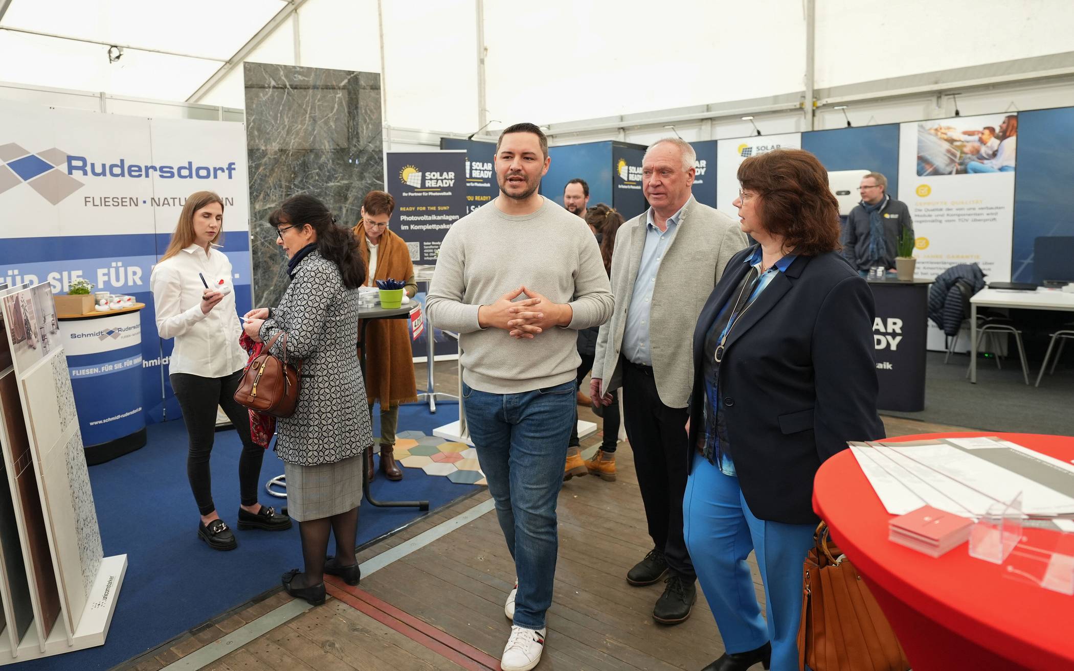 Eröffnung der Baumesse unter anderem mit Udo Erlei (3.v.l.), Geschäftsführer der BaumessE GmbH, Extra-Tipp-Verlagsleiter Lutz Mallwitz (2.v.l.) und Bürgermeisterin Petra Heinen-Dauber. Noch bis zum 24. März, täglich 10 bis 18 Uhr, lädt die Messe zum Besuch ein.