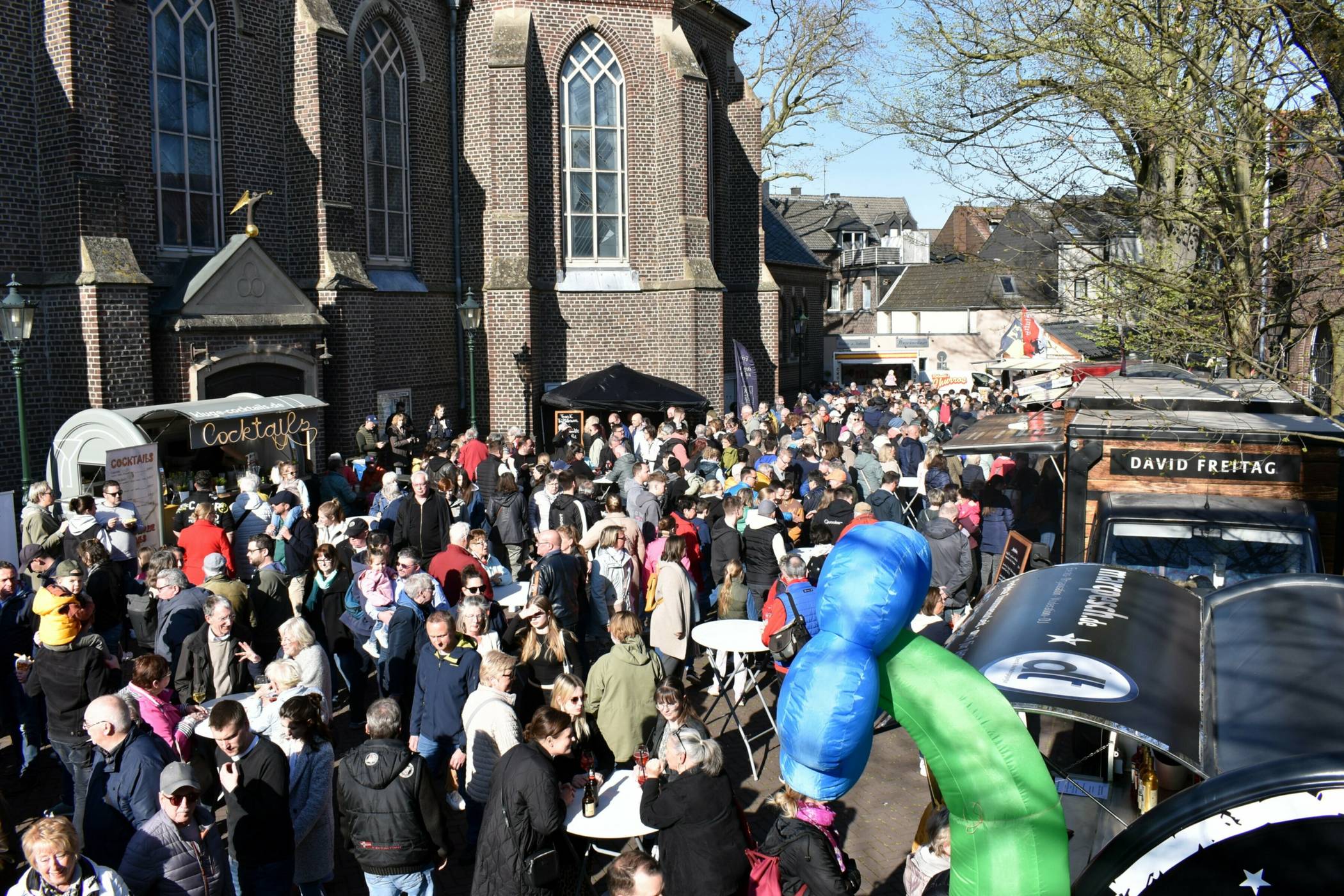 Das Team vom „Kartoffeltwister“ verwöhnt die Korschenbroicher mit frittierten Spiralkartoffeln, „Los Locos“ aus Düsseldorf kommen mit mexikanischen Tacos auf den Kirchplatz. Nach längerer Zeit ist diesmal auch die „Bio Bude“ mit Bio-Küche in Korschenbroich wieder mit dabei. Für die passenden Getränke sorgen „Kluge Cocktails“ sowie die beiden Organisatoren Marc Pesch und Dustin Thissen, die mit zwei Trucks mit Wein, Aperol Spritz, Lillet Wildberry, Bier und Softgetränken in Korschenbroich präsent sind.