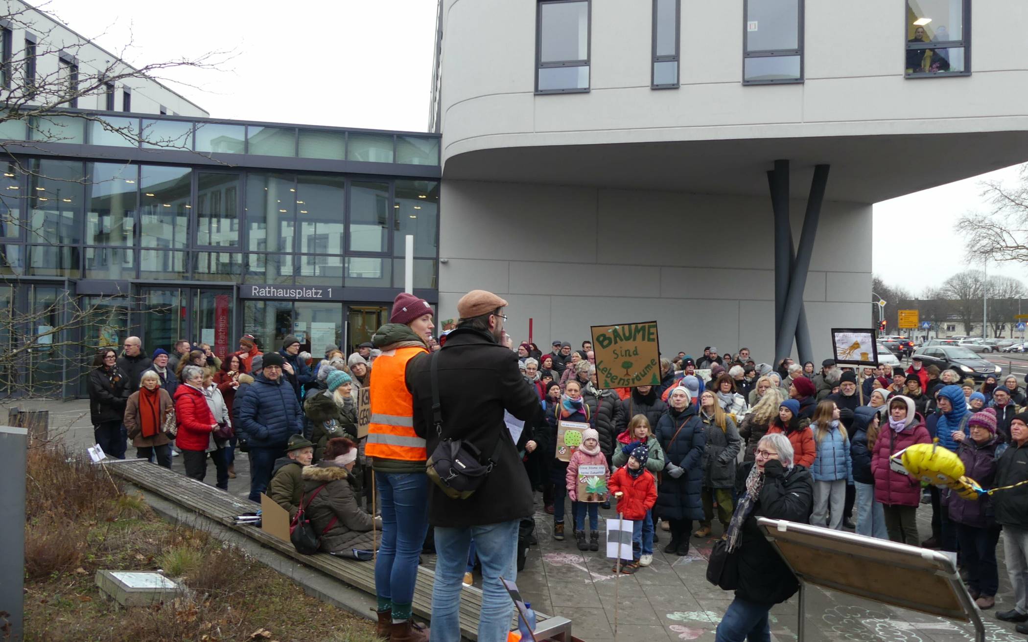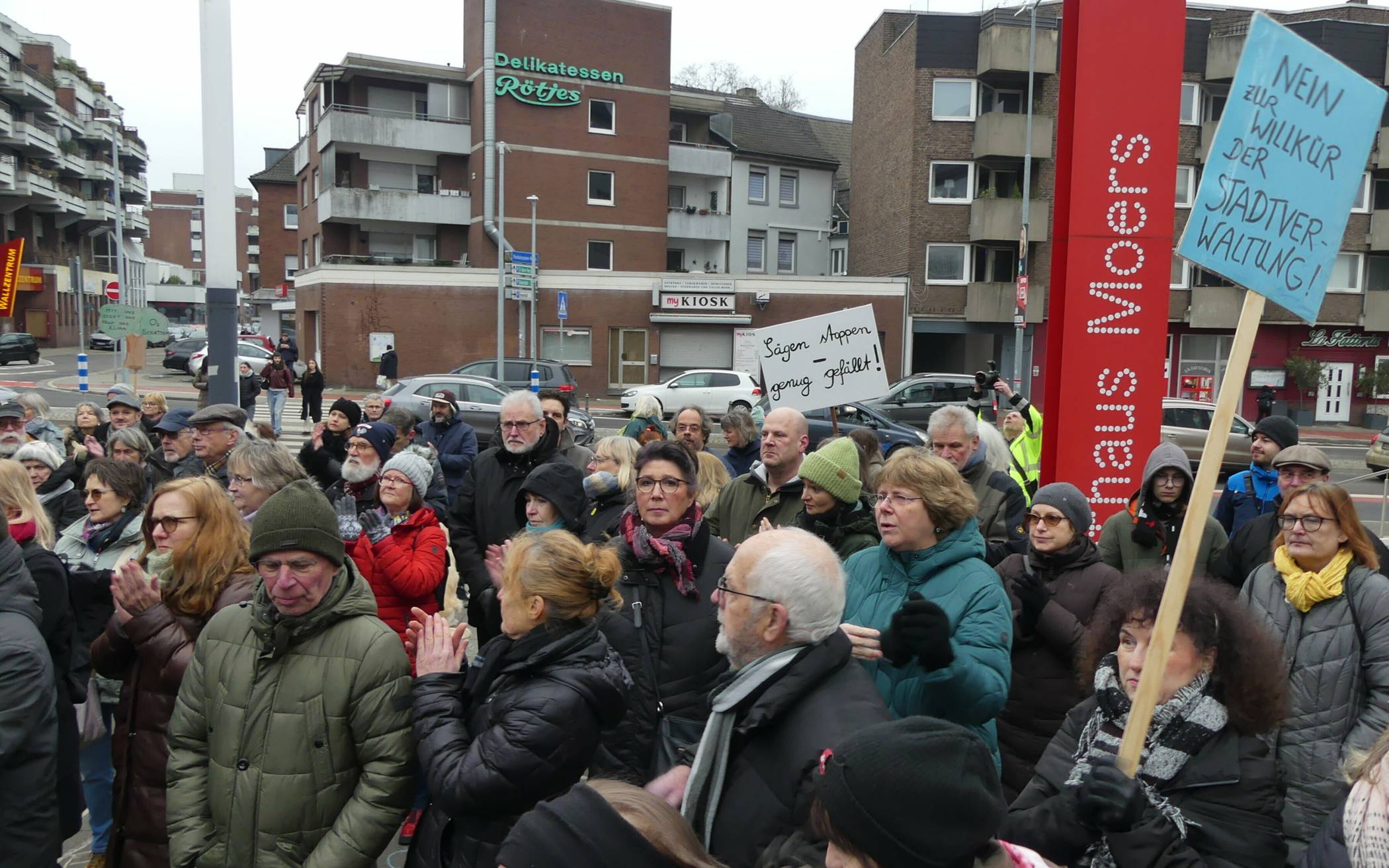 Bilderstrecke Baumfällungen im Moerser Schlosspark: Demo vor der Sondersitzung