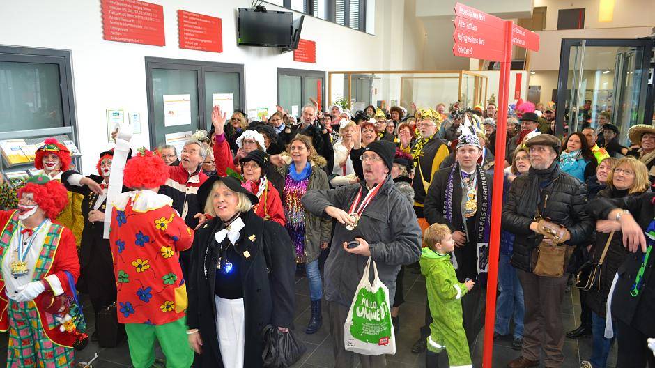 Die Möhnen haben es mal wieder geschafft: Sie haben das Rathaus eingenommen. Den Schlüssel hatte Bürgermeister Christoph Fleischhauer hinten in der Hose versteckt. Was ein Schlitzohr!