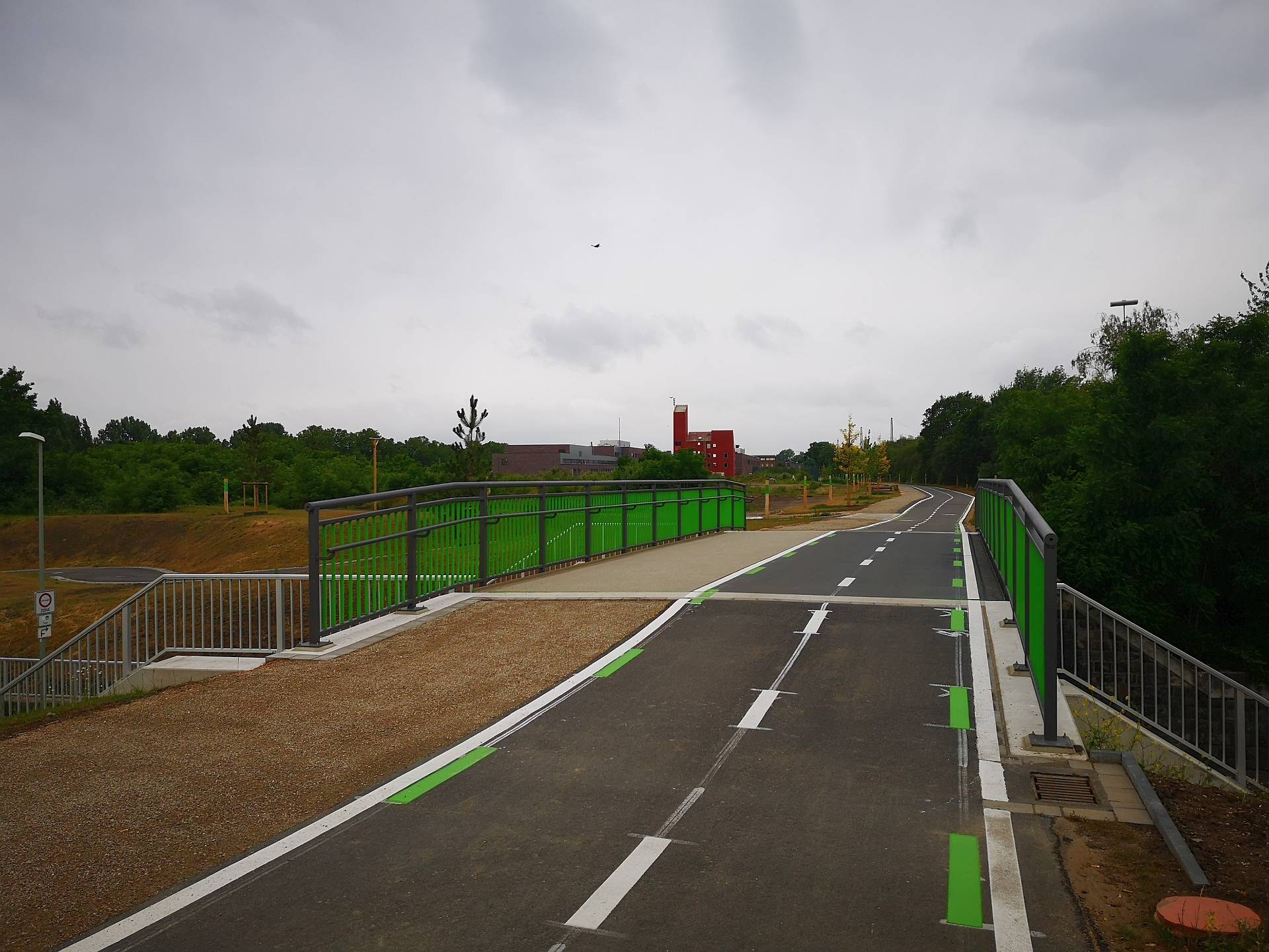 Wenn diese Achse fertiggestellt ist, dann verbindet sie im Westen das vorhandene Radwegenetz in die Niederlande, im Osten an die Radschnellwege im Ruhrgebiet. Der gegenwärtige Ausbaustand vermittelt einen guten Eindruck von der Idee: Zwischendurch bieten Bänke Platz zum Verweilen, auch kleine Spielmöglichkeiten sind schon aufgebaut. Am Dießemer Bruch gibt es einen Hügelpark, eine Rampenzufahrt und eine Treppenanlage. Im Bereich Trift/Weiden, wo die Promenade derzeit noch in einer Sackgasse endet, locken ein Calisthenic-Angebot (Eigengewichtsübungen) und Bänke zum Verweilen.
